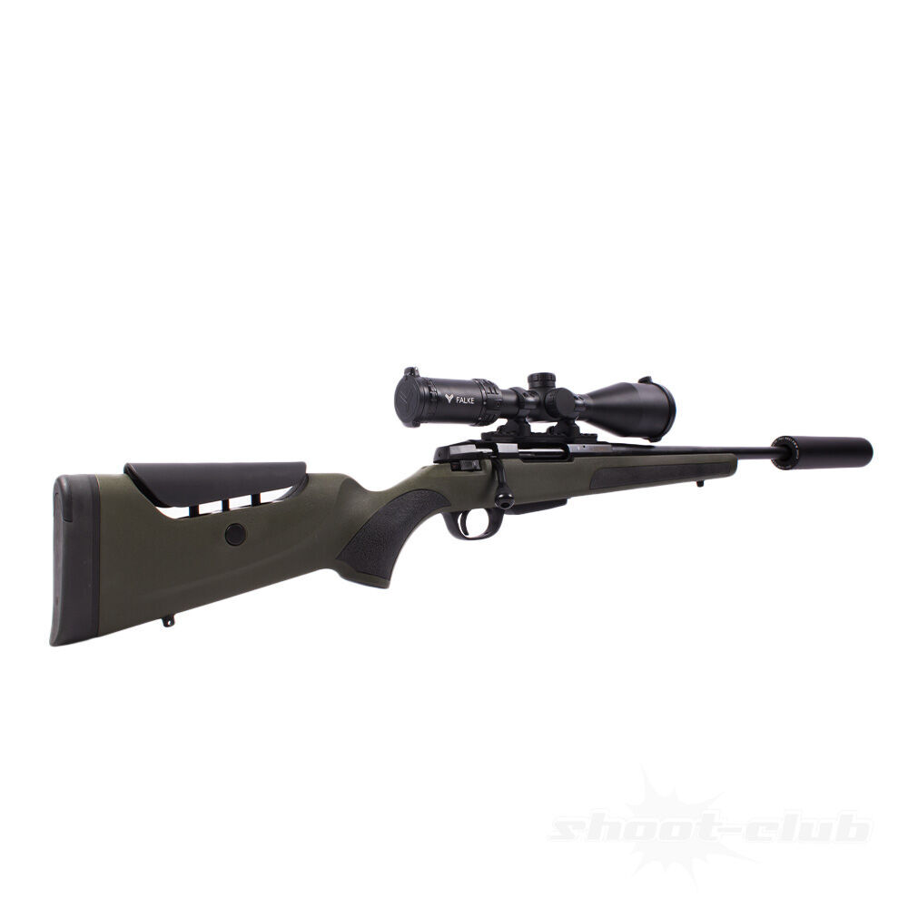 Brenner BR20 Polymer Grün .308Win Drückjagdset inkl. Falke 2-12x50 HD & Jaki Semi Classic Schalldämpfer