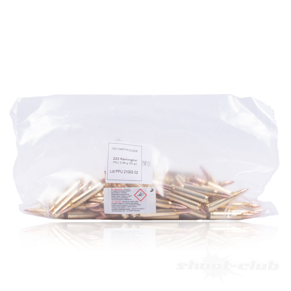 1x Packung PPU FMJ Büchsenpatronen 3,56g/55gr Kaliber .223 Rem