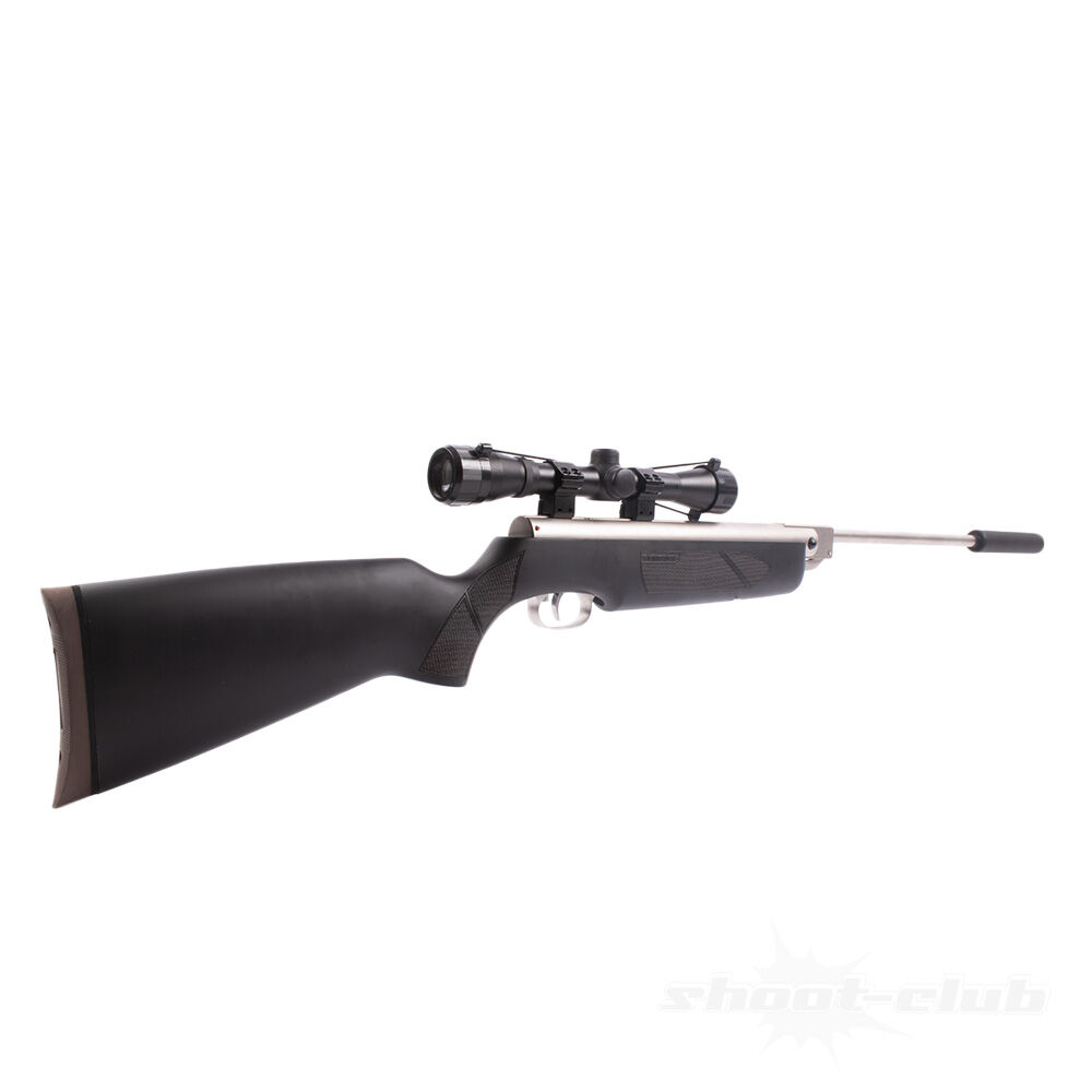 Eine Laufverriegelung mit Keilverschluss, automatische Sicherung und die edle Silberoptik im Kontrast mit einem edel verarbeiteten schwarzen Buchenschaft runden das Gesamtbild dieses hochwertig, gelungenen Luftgewehres ab.